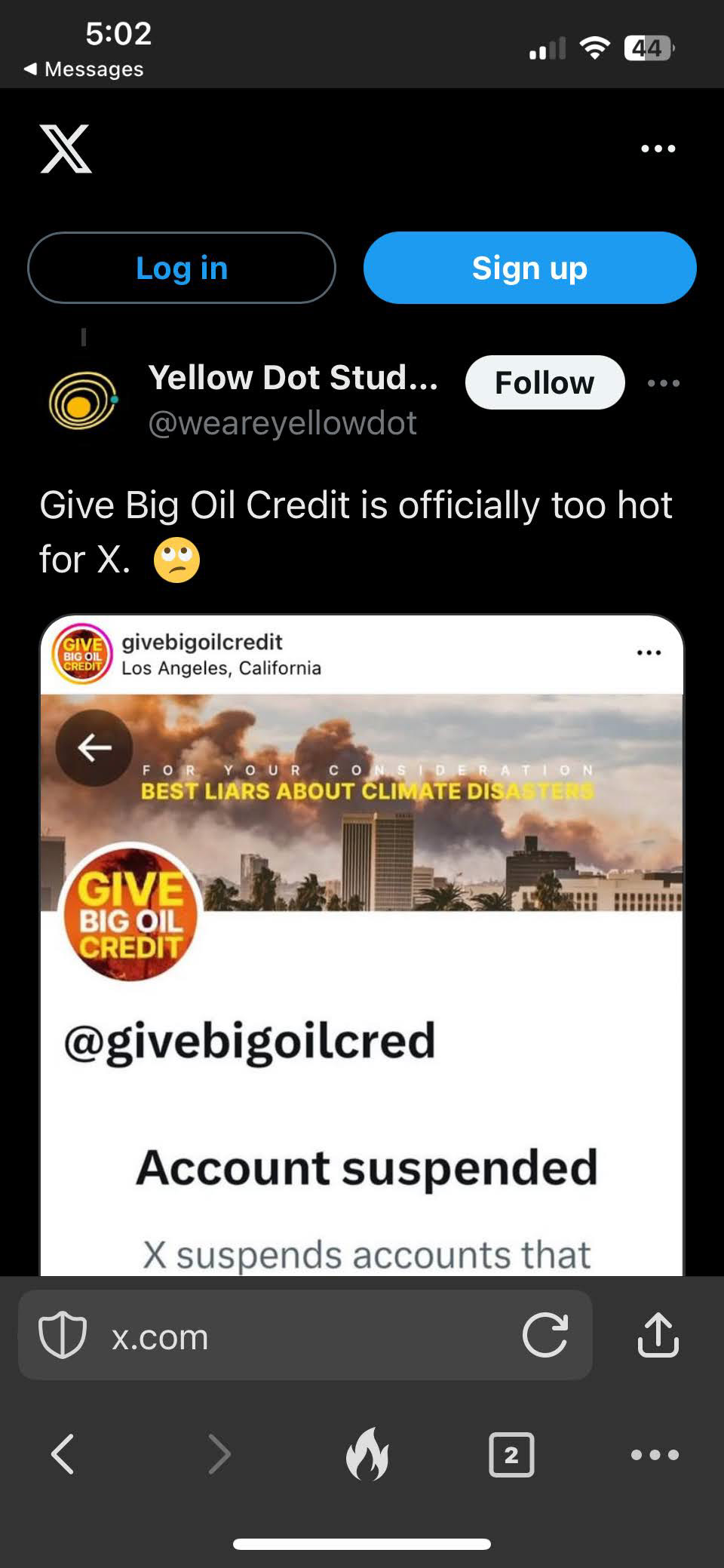 we created Give Big Oil Credit for the 2025 Grammys, the year of the Eaton and Palisades Wildfires.